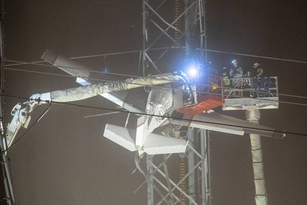 Passenger & Pilot Rescued From Power Line Plane After Crash
