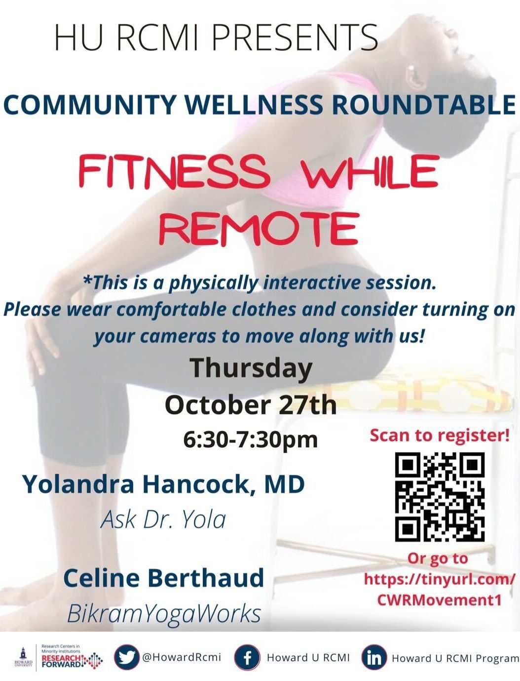 Howard University's RCMI's "Fitness While Remote" event is an interactive FREE virtual event to help you find ways to stay active while at home!