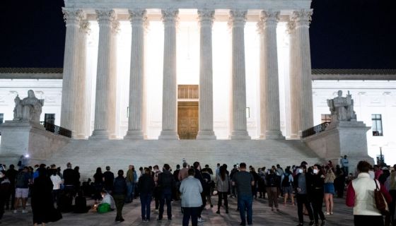 UNITED STATES – SEPTEMBER 18: A crowd gathers at the U.S. Supreme Court to mourn the death of Supreme Court Justice Ruth Bader Ginsburg died Friday, Sept. 18, 2020. People lit candles and left flowers and notes on the steps of the court. (Photo By Bill Clark/CQ-Roll Call, Inc via Getty Images)